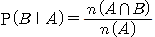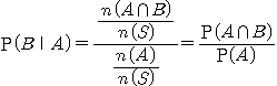 어떤 시행에서 표본공간 S의 각 근원사건이 일어날 가능성이 모두 같은 정도로 기대될 때, 사건 A가 일어났을 때 사건 B의 조건부확률은