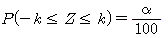 표준정규분포표에서 나온 숫자로 신뢰도와 연관된 숫자를 찾아서 α%의 신뢰도를 구할 때 다음과 같이 구한다.