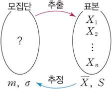 표본을 조사해 얻은 정보를 이용하여 모평균, 모표준편차와 같이 모집단의 특성을 나타내는 값을 추측하는 것을 추정이라고 한다.