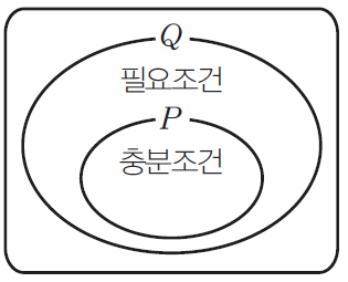 두 조건 p, q의 진리집합을 각각 P, Q라 할 때