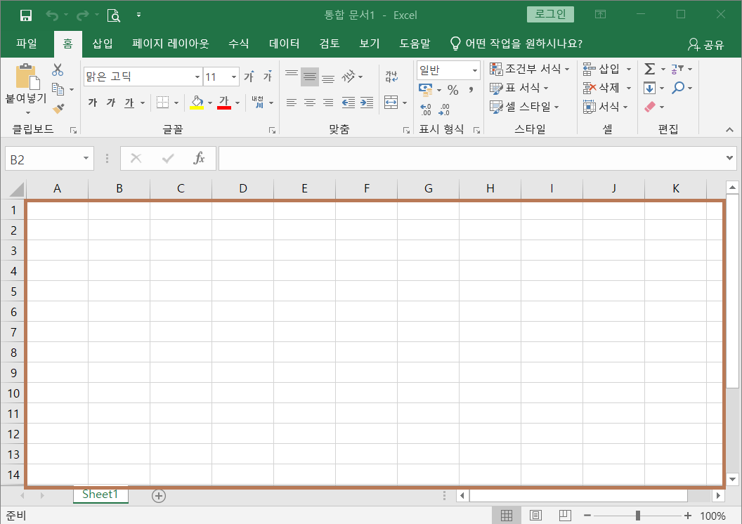 100%클릭 : [확대/축소] 대화상자를 불러와 워크시트 화면 보기 배율을 설정