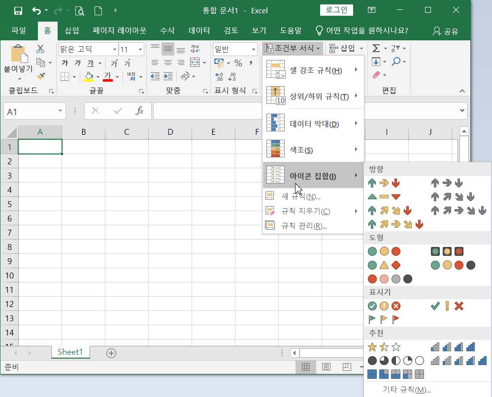 (5) 아이콘 집합 : 데이터를 3~5가지 범주로 구분하여 각각의 아이콘으로 표시함