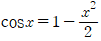 $ \cos x = 1-\frac{x^2}{2!}+\frac{x^4}{4!}-\frac{x^6}{6!} +\cdots $