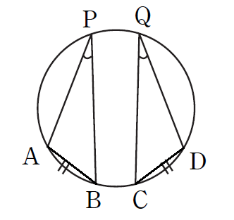 호AB = 호CD ( 또는 $ \overline{AB}=\overline{CD}$ ) 이면 $ \angle APB = \angle CQD$
