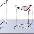 ■ 정사영 평면 밖의 한 점 P에서 평면 에 내린 수선의 발 P’을 점 P의 평면 위로의 정사영이라고 한다. 또, 도형 F의 각 점의 평면 위로의 정사영으로 이루어진 도형 F’을 도형 F의 평면 위로의 정사영이라고 한다. ■ 원의 정사영 평면 와 이루는 이면각의 크기가 인 평면 위에 있는 원의 평면 위로의 정사영은 타원임을 증명해 보자. 위의 그림과 같이 두 평면 의 교선 에 평행한 원 O의 지름을 선분 AB, 원 O 위의 임의의 점 P에서 선분 AB에 내린 수선이 두 직선 AB, 과 만나는 점을 각각 H, Q라고 하자. 원의 중심 O와 두 점 P, H의 평면 위로의 정사영을 각각 O’, P’, H’이라고 하면 ……① 평면 는 점 O를 원점, 직선 AB를 x축으로 하는 좌표평면으로, 평면 는 점 O’을 ..